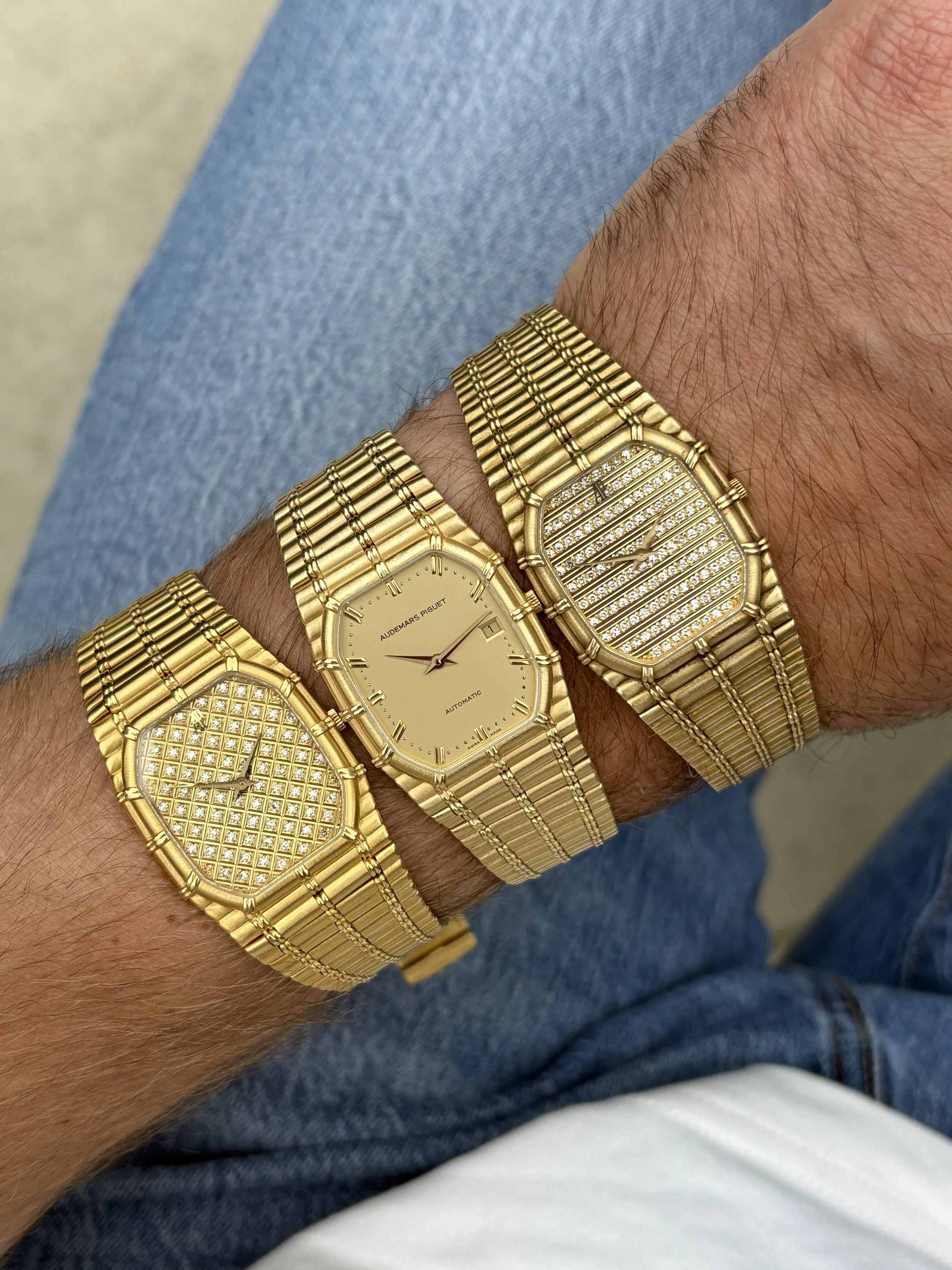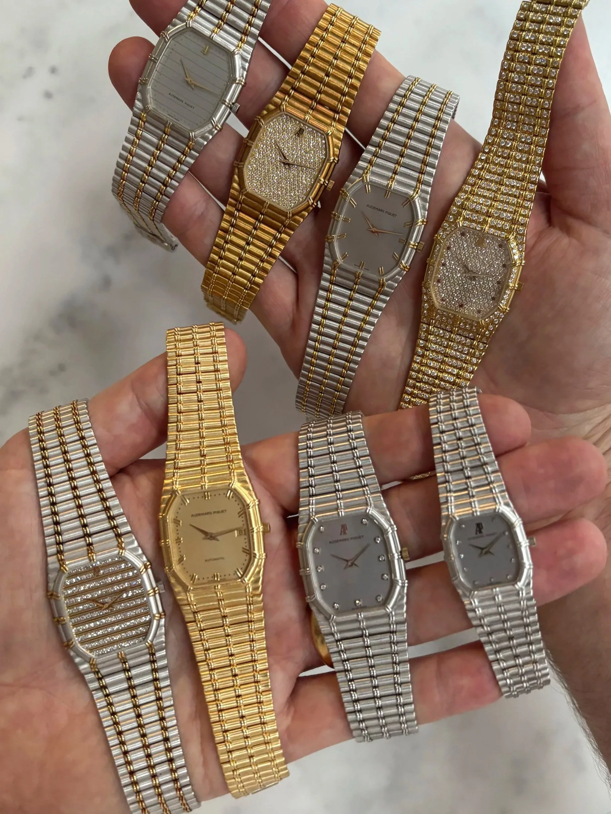 The rise in popularity of the Audemars Piguet Bamboo among collectors has been nothing short of deserved. Produced as an exclusive collection from the early 1980s to the late 1990s, it was largely overlooked in comparison to more commonly seen models in AP’s back catalogue. Its exceptional quality and style are instantly recognisable, with a slim octagonal case, fun dial variants, and delicate 18ct gold cylindrical bamboo links that sit perfectly on the wrist. This level of craftsmanship has made the AP Bamboo a poster boy in the resurgence of luxury and jewellery-style vintage watches.